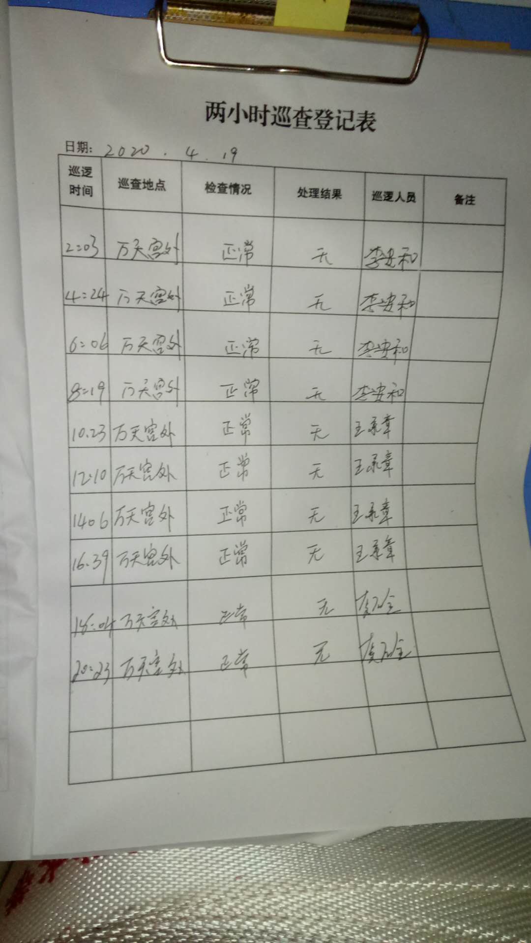 每日巡逻检查登记